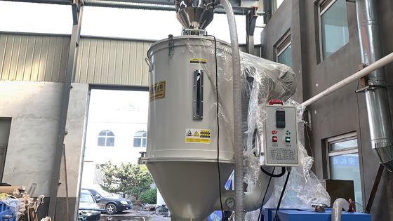 La première partie est lamachine d'alimentationCette machine introduit les matières premières, généralement des granulés de PE mélangés avec des additifs, dans l'extrudeuse en continu et uniformément.La machine d'alimentation assure que les matériaux circulent en douceur sans interruption, ce qui est très important pour maintenir le processus d'extrusion stable.