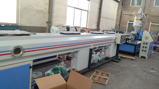 Mesurant 25 mètres de long, 2,6 mètres de large et 1,8 mètre de haut, la ligne d'extrusion de tuyaux en plastique est conçue pour s'intégrer parfaitement dans divers environnements de fabrication. Sa disposition compacte mais complète maximise l'utilisation de l'espace tout en offrant un accès facile pour la maintenance et les ajustements opérationnels. Les dimensions de la machine garantissent qu'elle peut être intégrée dans les installations de production existantes sans nécessiter de modifications importantes, facilitant ainsi un processus de mise en œuvre en douceur.